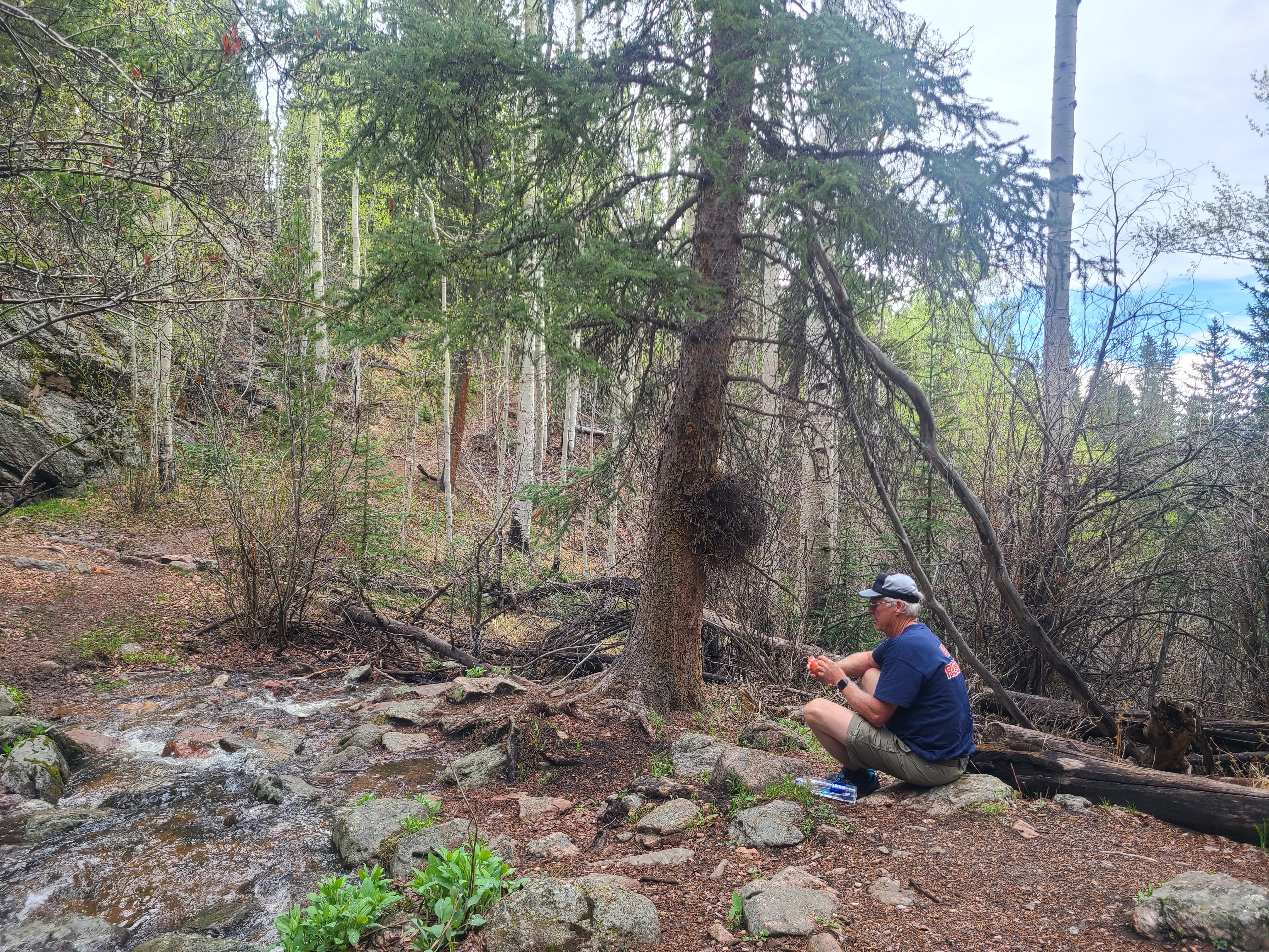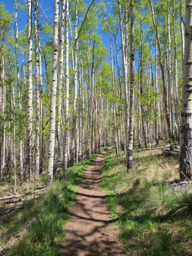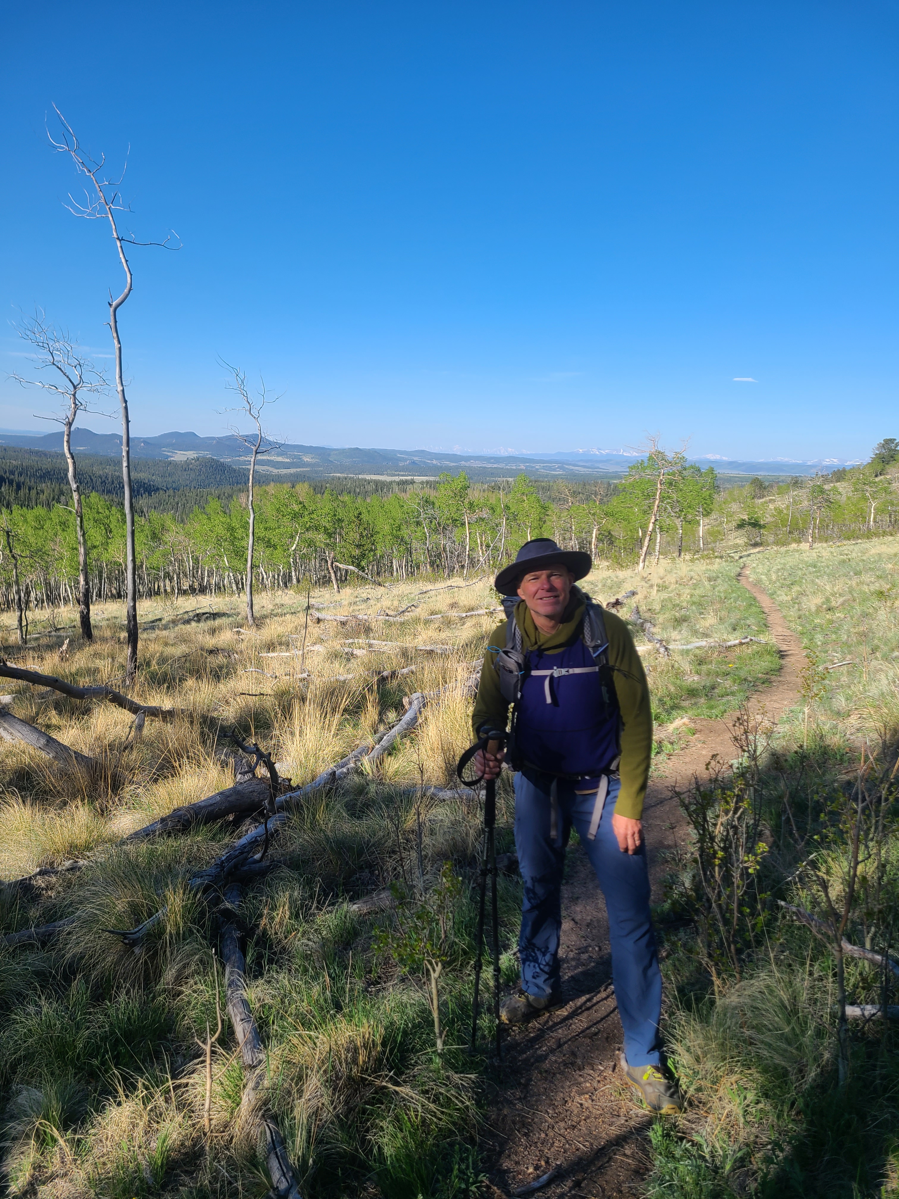We hiked around ten miles our last day, most of it through aspen forests. As pretty as this area is now, it must be absolutely spectacular in the fall. There was a bit more up and down climbing than we had expected. I had been using the Colorado Trail Foundation’s Databook which is pretty essential and helpful for navigating the trail, but I was learning that the trail often has some pretty decent descents and climbs that you can’t predict by just looking at elevations of consecutive waypoints. I was new to using the Guthook app and hadn’t yet discovered the elevation profile feature. But the bigger lesson was to just enjoy the hike & what was to be discovered around the next bend; and get my head out of that little book & the miles on my phone. Sorry about that Art!