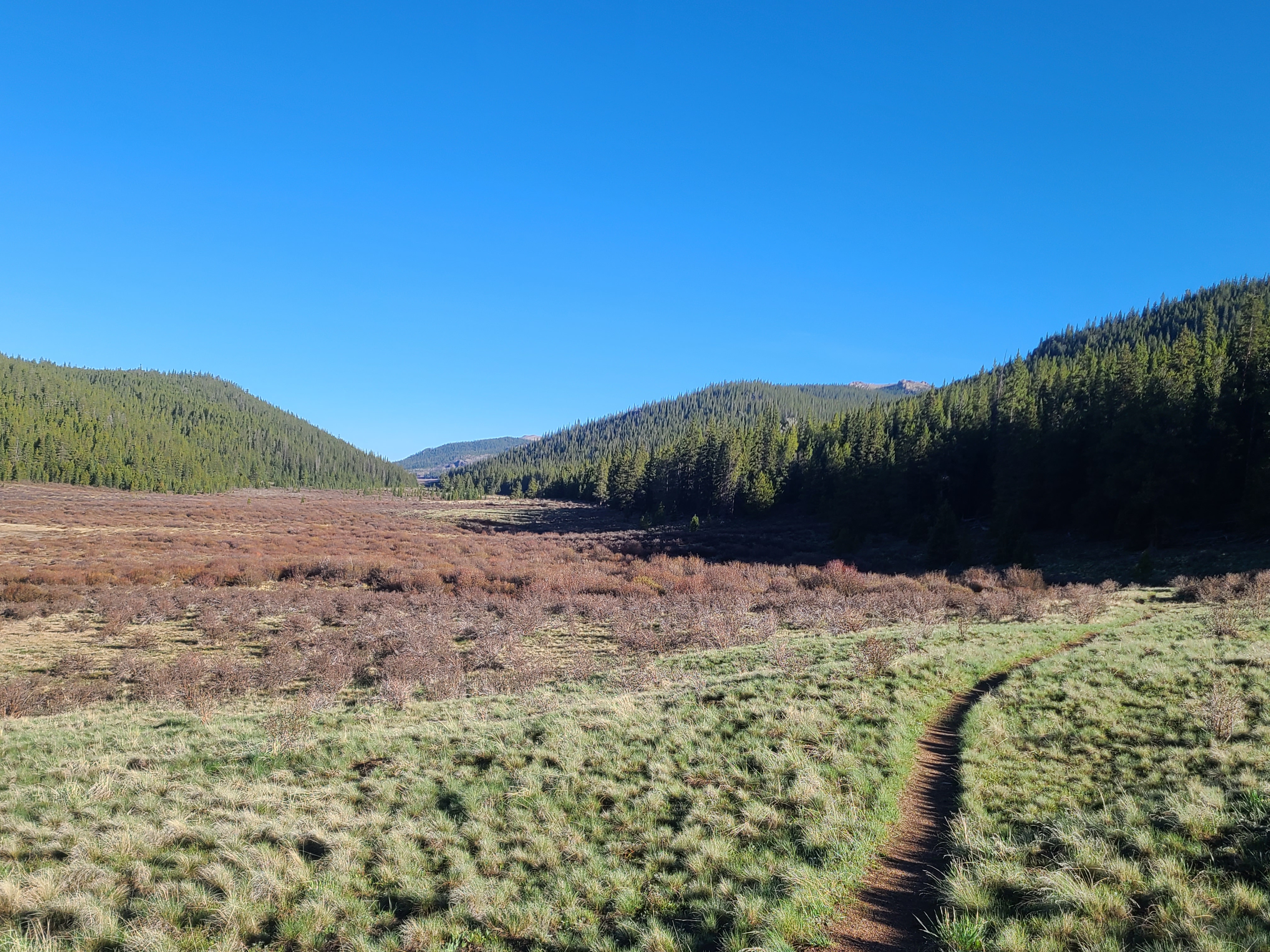 We were rewarded with great views of South Park after our last climb and started to encounter some other happy hikers. The most fun were a group of elderly ladies from a local hiking group who were fearlessly climbing up the sometimes rocky trail as we descended towards Kenosha Pass. I hoped that I would have that drive & ability if and when I reach their age.