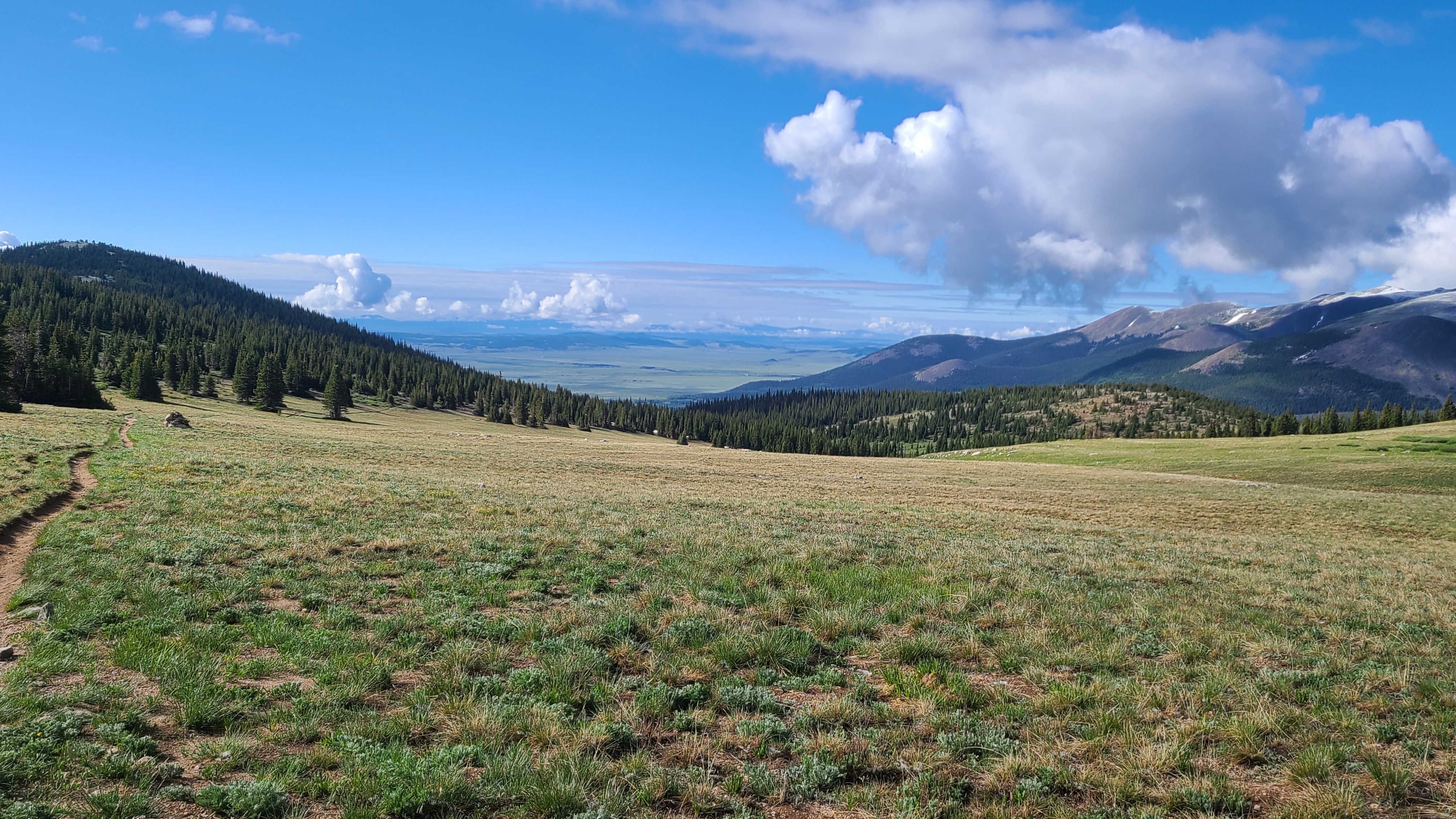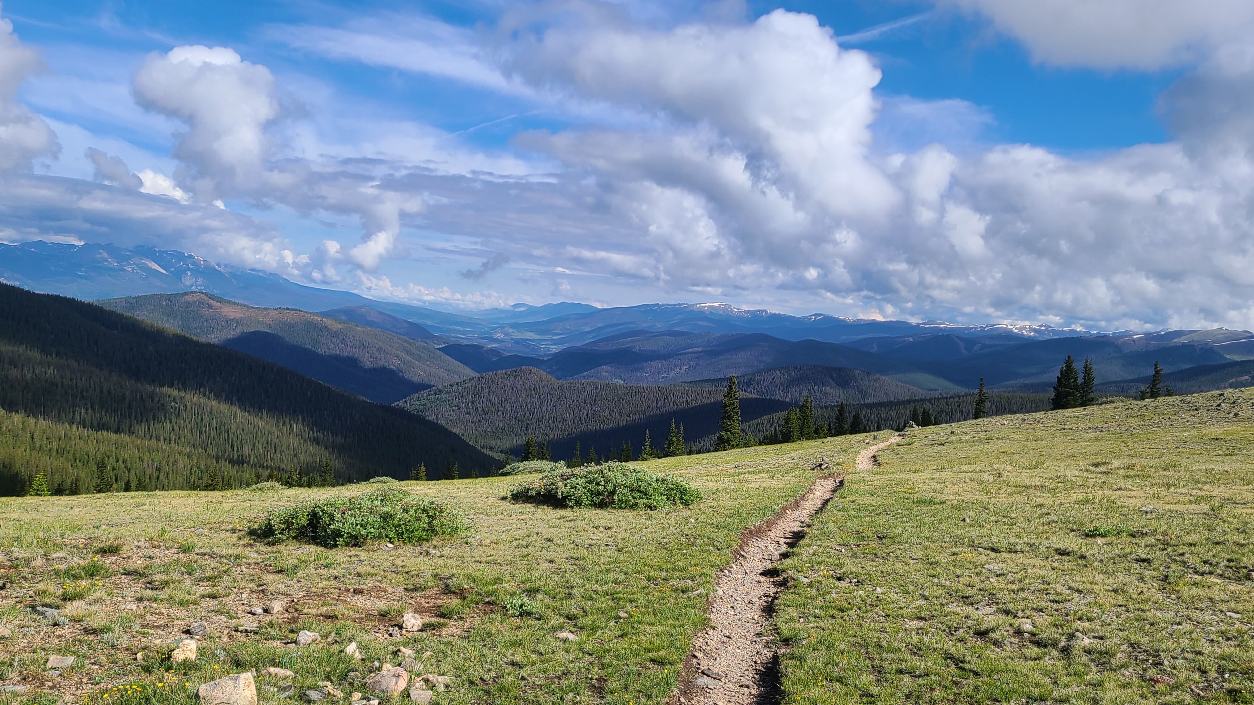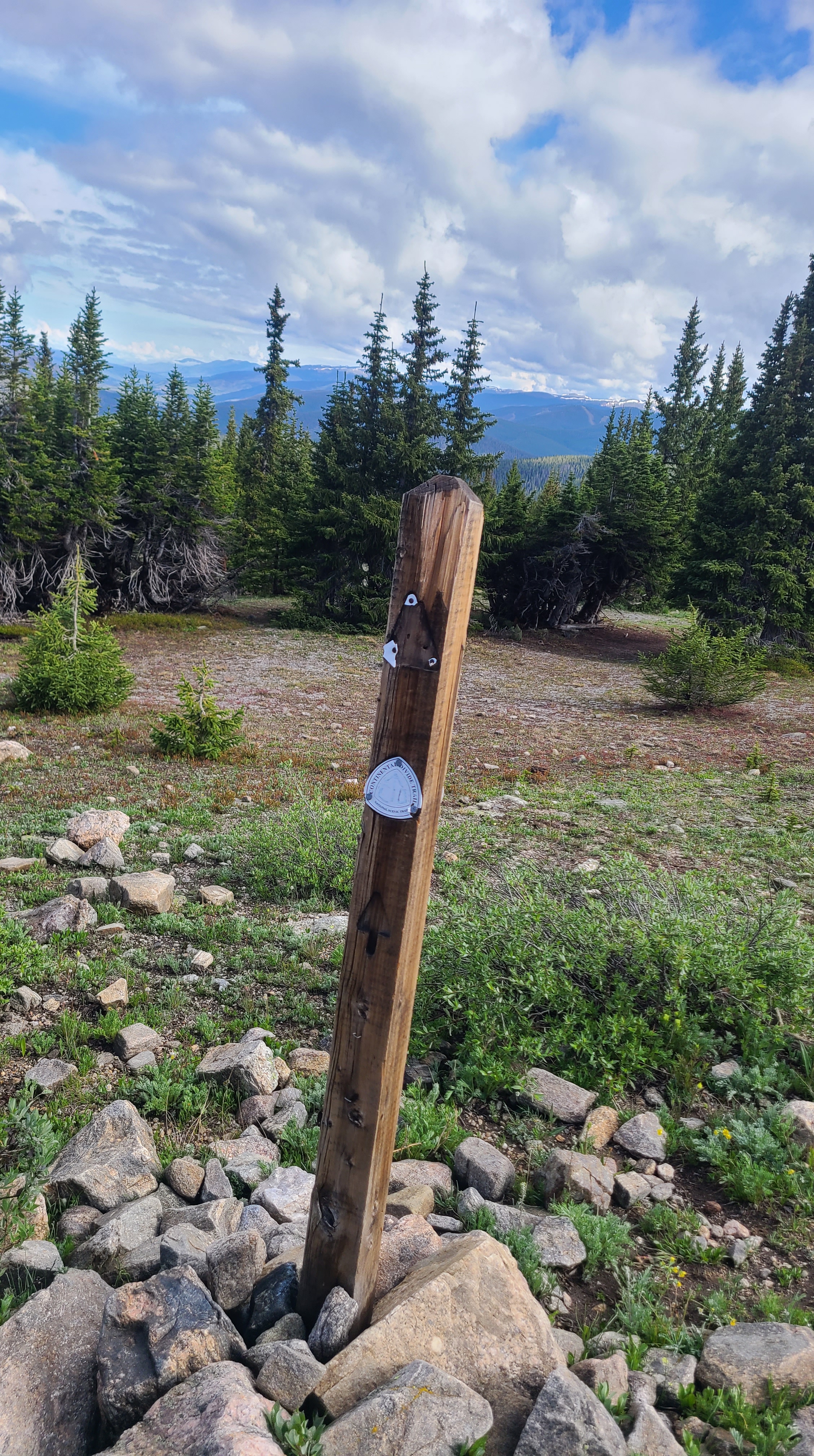 I could see some fresh snow higher up on the trail as I started towards Georgia Pass. Not far up the trail I passed a few other hikers still in camp drying out their tents from yesterday’s storm. I had heard them passing my camp during the storm late in the afternoon before while I was already cozied up inside my tent. I had to climb about 2000 feet over the first 6 miles, but I was excited finally get to Georgia Pass and kept a good pace that morning. I leap-frogged with a handful of other friendly CT thru-hikers along the way which seemed to help with the climbs. It looked as if I was still ahead of the CT bubble. As I reached Georgia Pass I was rewarding with the view of South Park behind me and the Gore Range ahead of me as the trail turned north towards Breckenridge and connected with the Continental Divide Trail.