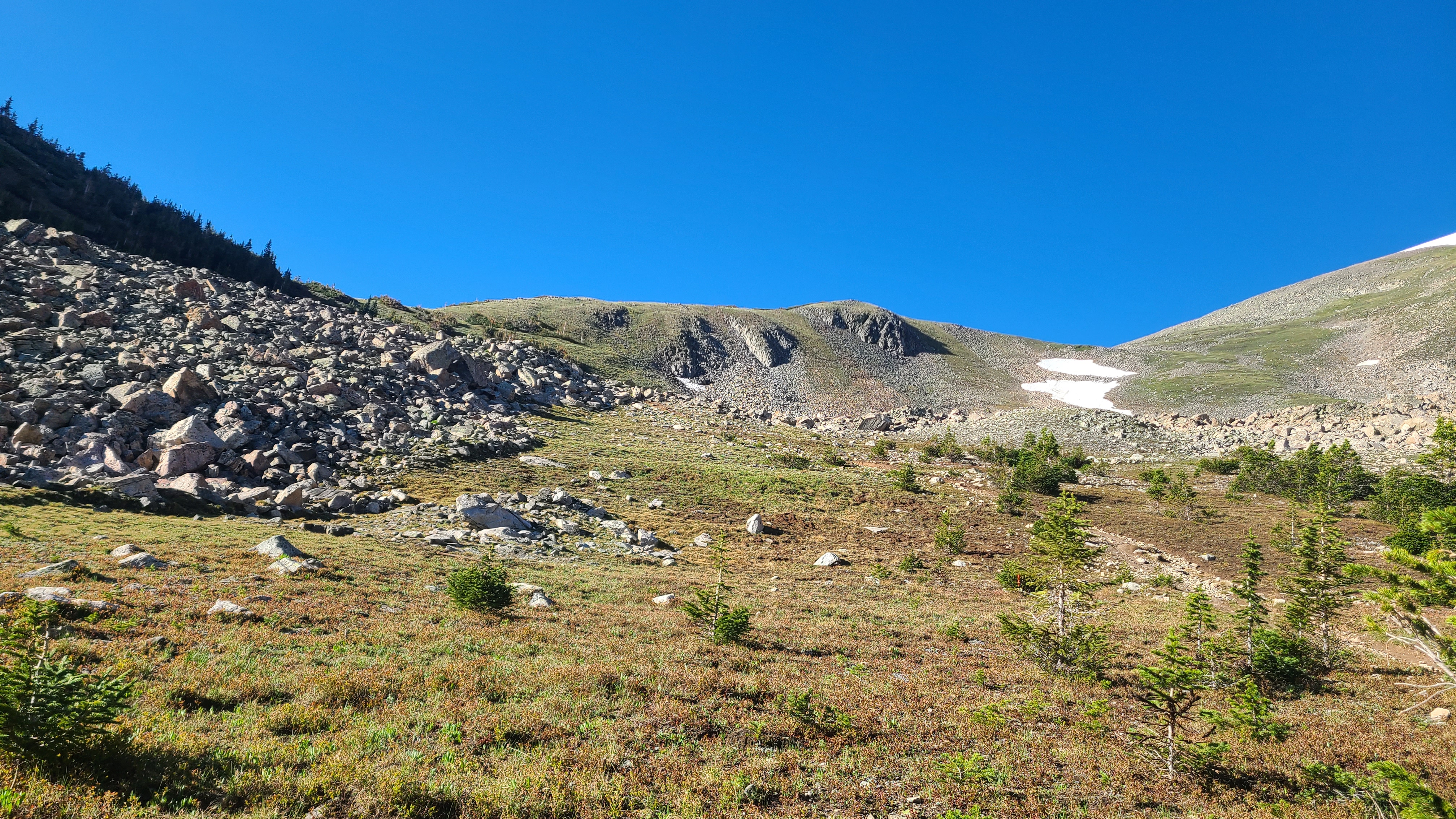 I saw a surprising number of NOBO CDT hikers that day. These folks were my new idols, and it was cool how they seemed as excited for me on my CT hike as I was for them on their CDT journey. I imagined this is what a mite hockey player must feel like when they get to play a game during intermission at an NHL game, and get high fives from their heroes as they leave the ice. I stopped for a long lunch at the Swan River after about 13 miles and filtered water to carry over the next 9-mile dry section. The trail gains about 1000 feet over the next two miles towards Keystone. There was another unexpected climb after that through a beetle kill area. I visited with nice pair of CDT hikers called Fire Hazard & Spider Monkey alongside the trail while they contemplated whether to carry on that afternoon towards Grays Peak, the only 14er on the CDT, in the wake of yesterday’s big thunderstorm.