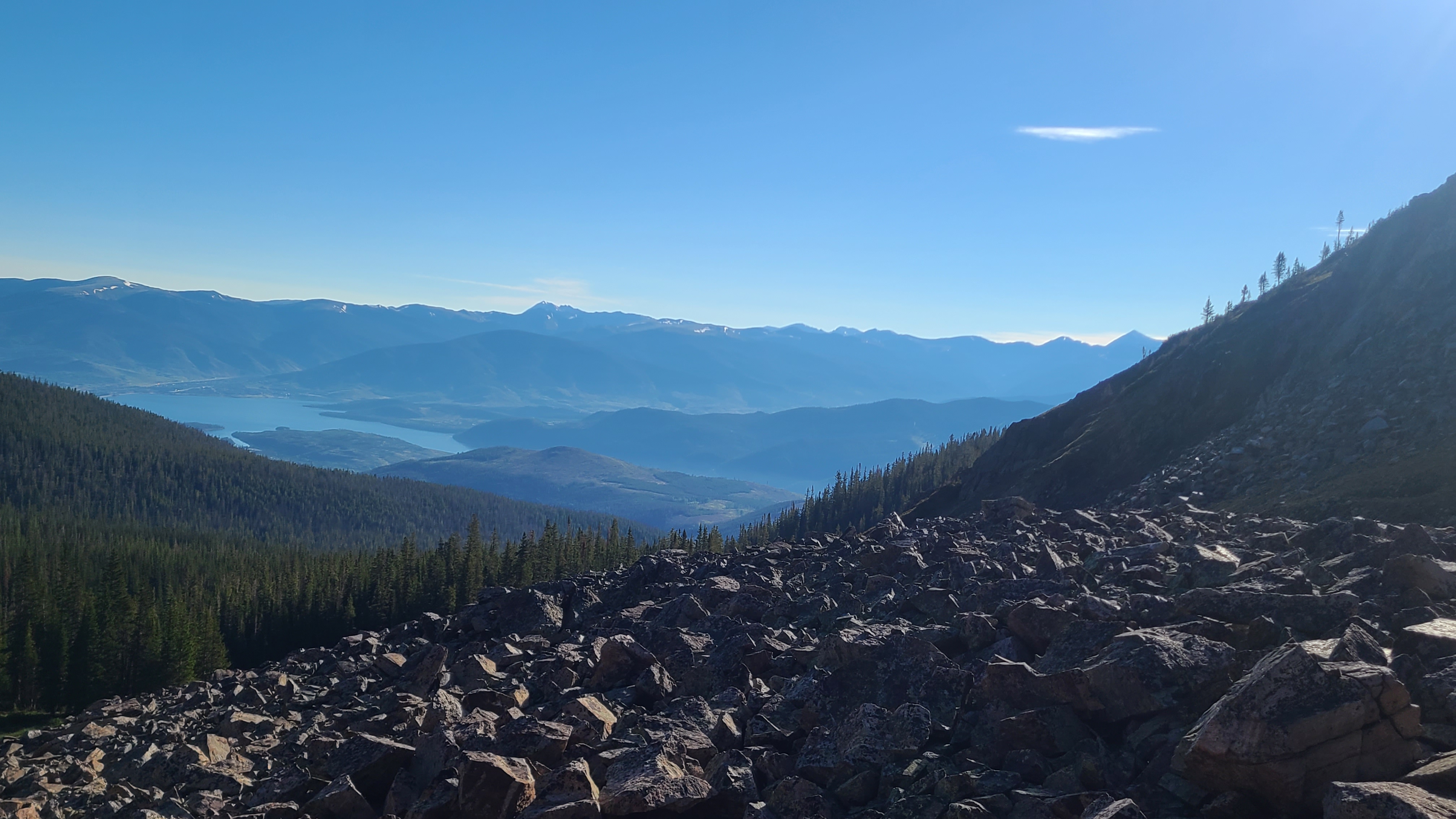 I had left myself 8 miles to go on Wednesday to finish out this trip, with a 2000 foot climb up & over the Tenmile range in the first 3 miles. I struggled as the trail relentlessly continued up through woods. I could see some jagged high peaks ahead and wondered how I could ever get over. As I got closer to treeline the route became more clear, and there were even some scenic stepping stones to help me up the first peak.