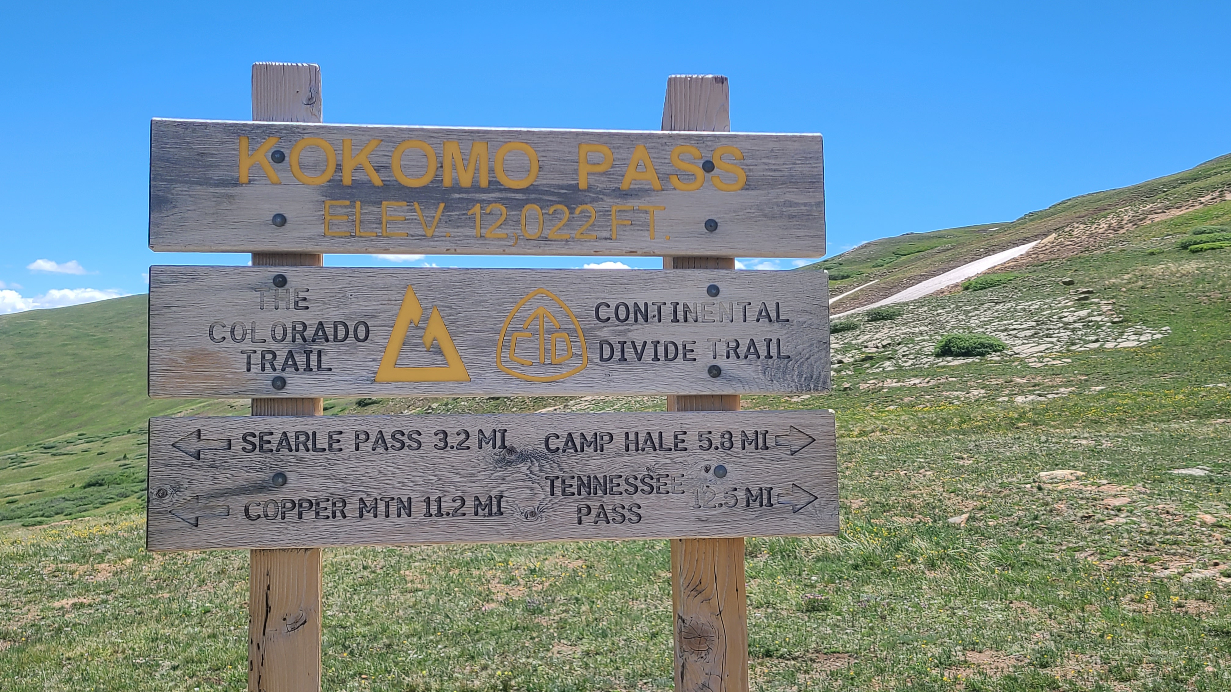 The trail followed along a grassy ridge to the top of Kokomo Pass. I was all alone at this point, and like many hikers before me I couldn’t help but sing that Beach Boys song out loud as I approached the sign. La Playa Brujas near Mazatlan, where I took my wife Maria on our first beach vacation, is my Kokomo. But it was cool to visit a real place called that too.