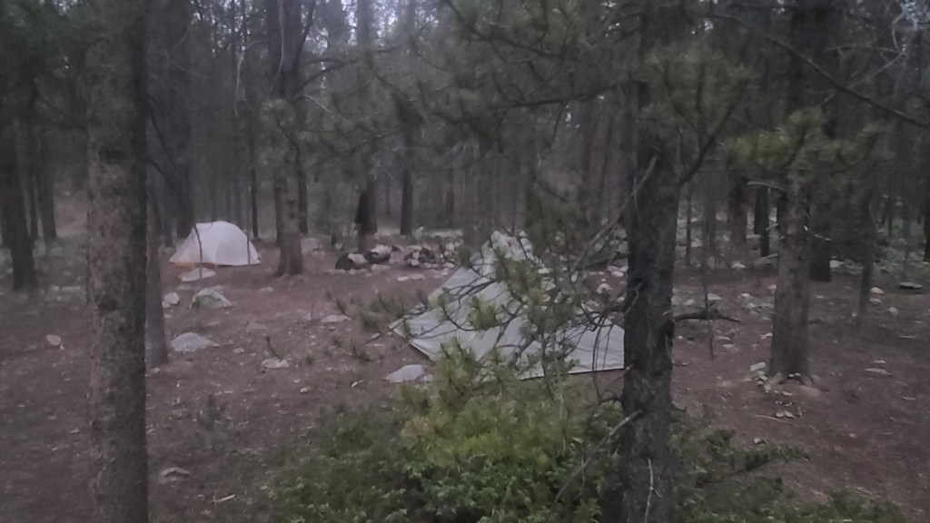 We dropped his Jeep at the Timberline Lake Trailhead and drove my pickup back to Tennessee Pass near the 10th Mountain Division Memorial. We were starting in the early evening and only had to cover about 2.5 miles that night. It starts out as a nice trail winding through the woods with some gentle ups & downs. I assumed that the taller than usual trail markers must mean this is a popular route in the winter as well. We found a nice campsite just beyond a bridge-covered creek. Erik has been 4-wheeling in these hills for years and he recognized the Jeep trail just past our campsite as Wurts Ditch road. Most of the forests on the CT were not ideal for bear hangs, so I tied my Ursack to a tree trunk far enough away from camp after dinner. It had been a really fun evening hiking & chatting in the woods.