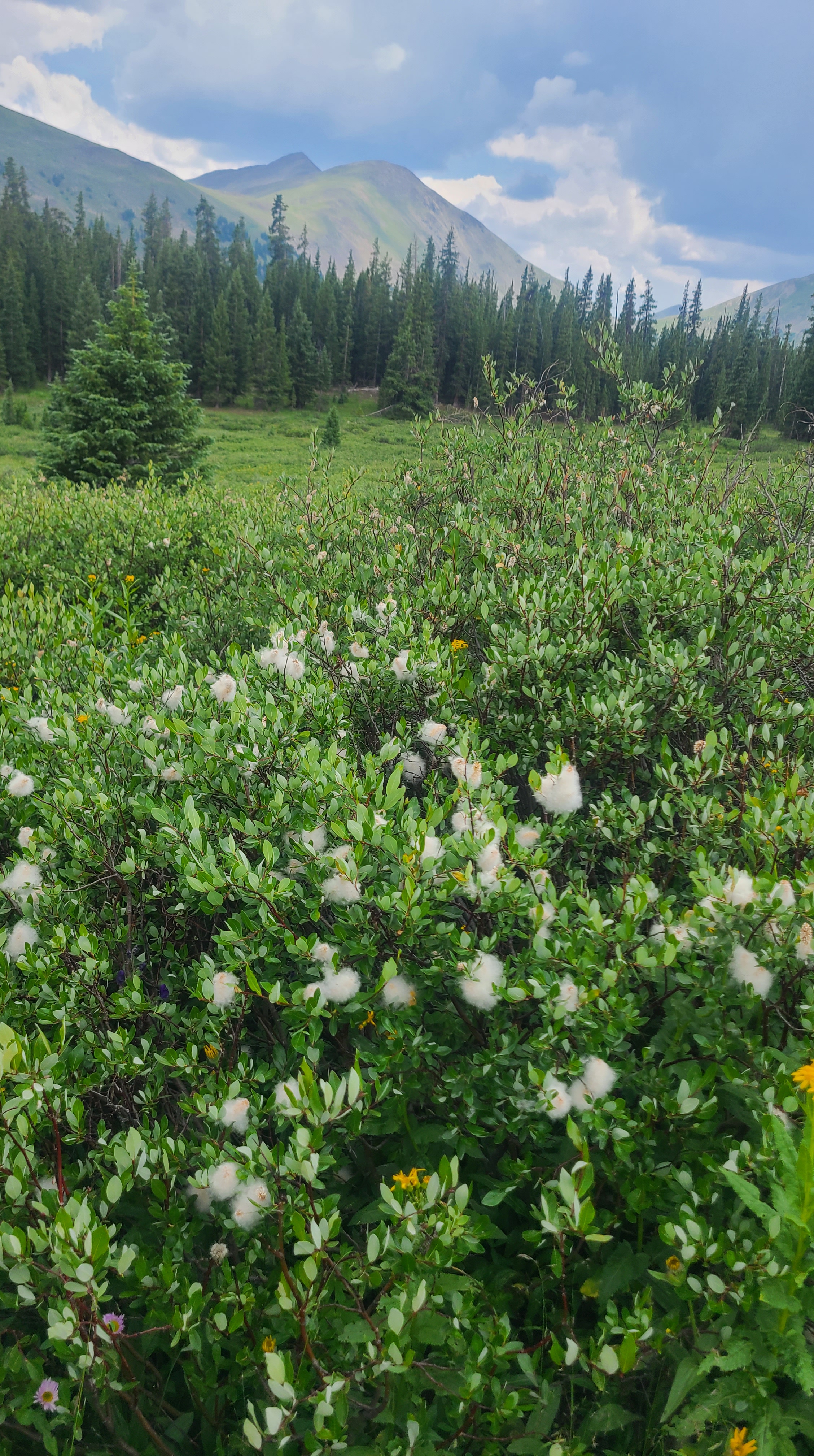 The trail eventually bottomed out around 10,000 feet I as reached small meadow then began hiking alongside the meadow into the woods. I wasn’t sure if it was the climbs from the past two days or my apprehension about all the passes ahead, but the relatively easy first 7-8 miles were a struggle today, and I found myself stopping for a break about anytime I could find a decent log to sit on. I had a little trouble finding the crossing across Texas Creek, and I felt bad as 3 friendly hikers had too squeeze by me as I sat on a log right alongside the trail. I finally got myself moving again and soon saw the same hikers stopped near a swifter crossing of the creek, rinsing out their clothes and taking a creek bath. They were 2 younger females and a male; I was a bit embarrassed and tried not to look at their near-nakedness as I stopped to fill some water. Thankfully they were all still friendly.