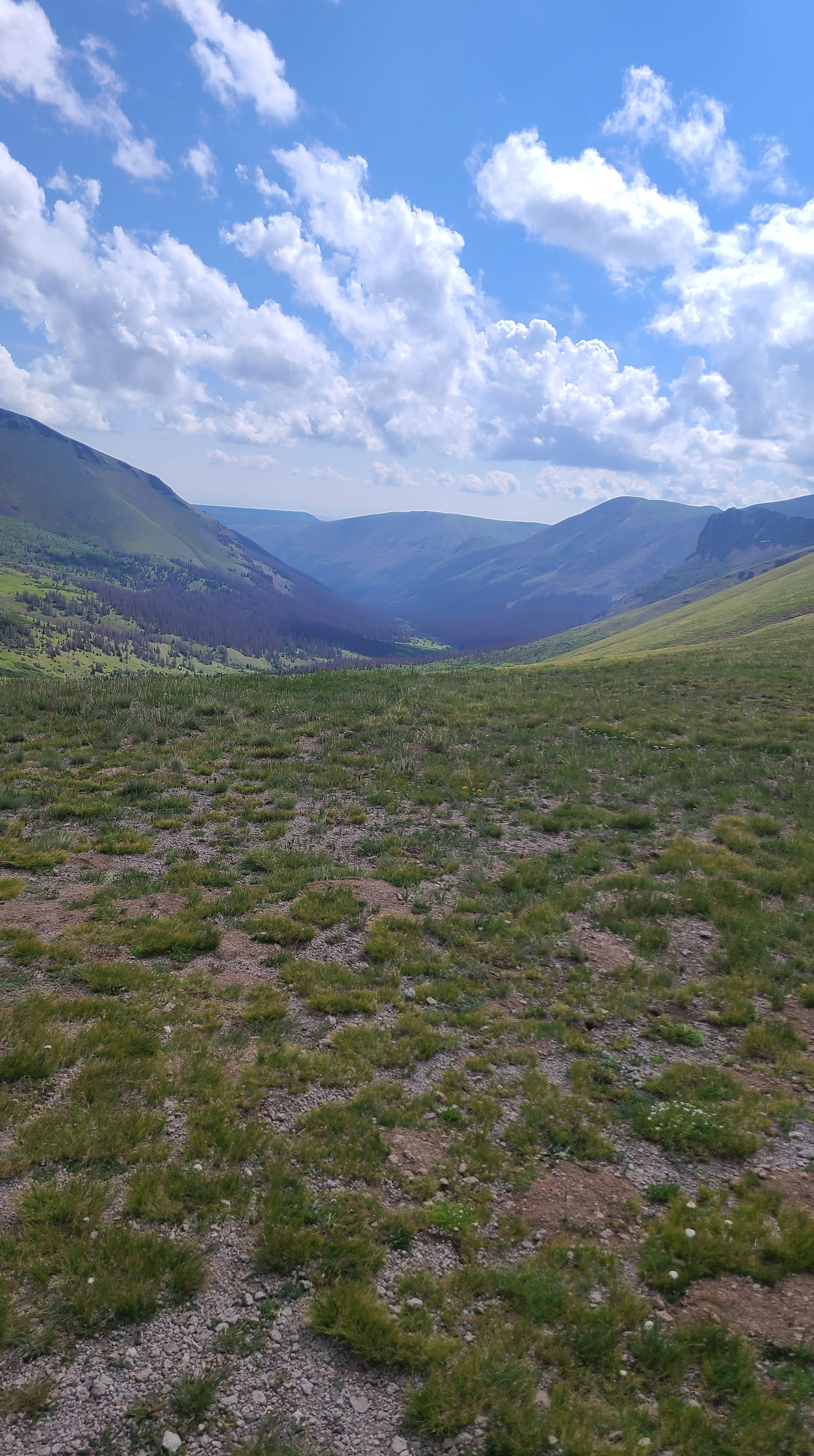 The campers I had passed by earlier caught up and we leap-frogged up the the saddle to the base of San Luis Peak. I had hoped to summit the peak but had not planned well for this. It would be a 2-3 hour roundtrip, and it was late morning already with more several more ridges ahead for the day. Plus my mindset was that I really didn’t want to hike anywhere that wasn’t forward on the Colorado Trail. I hiked down the rockslide from the saddle and crossed paths with a several hikers marching up to their next 14er. I’ll be back for this one, I promised myself.