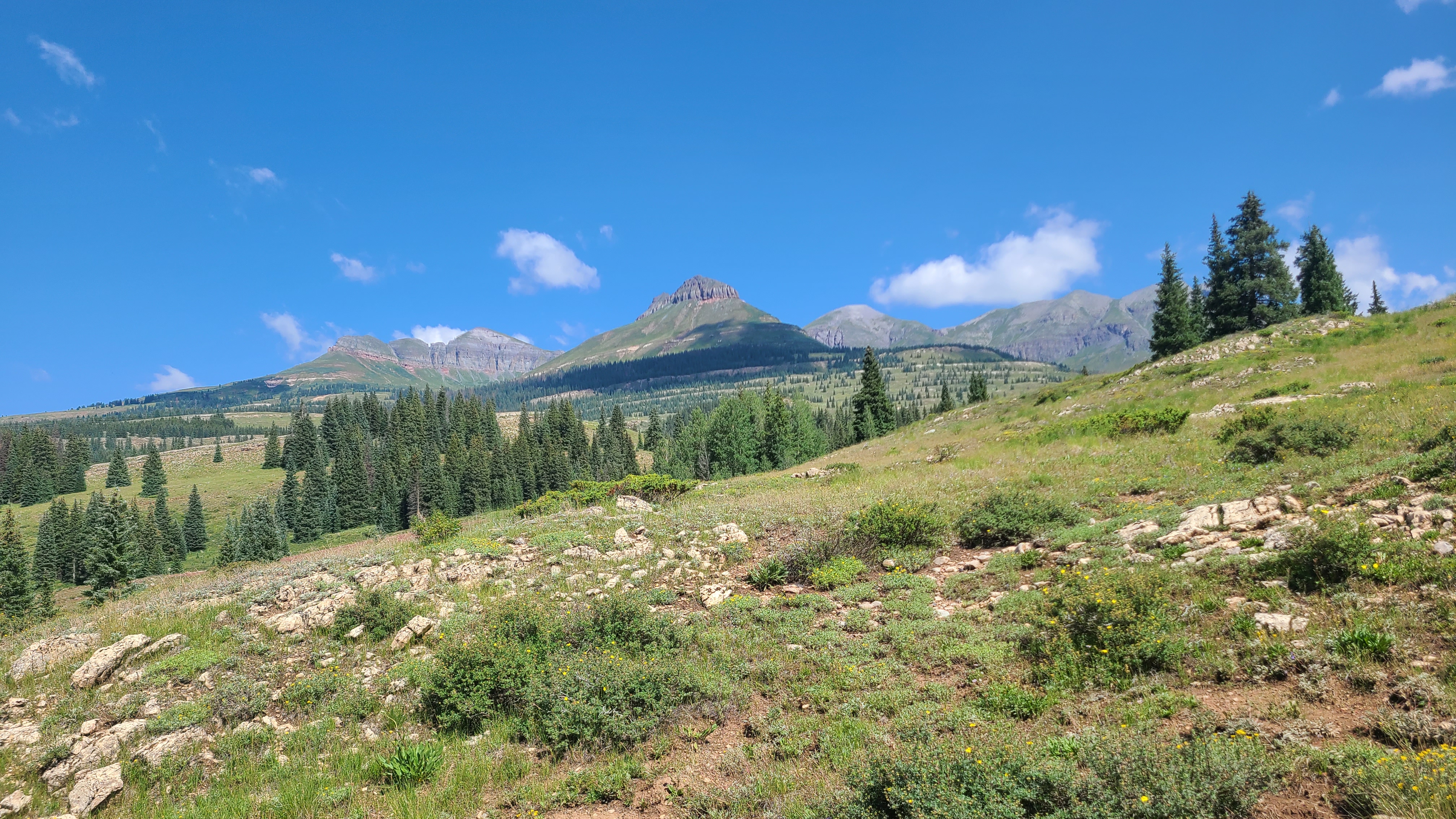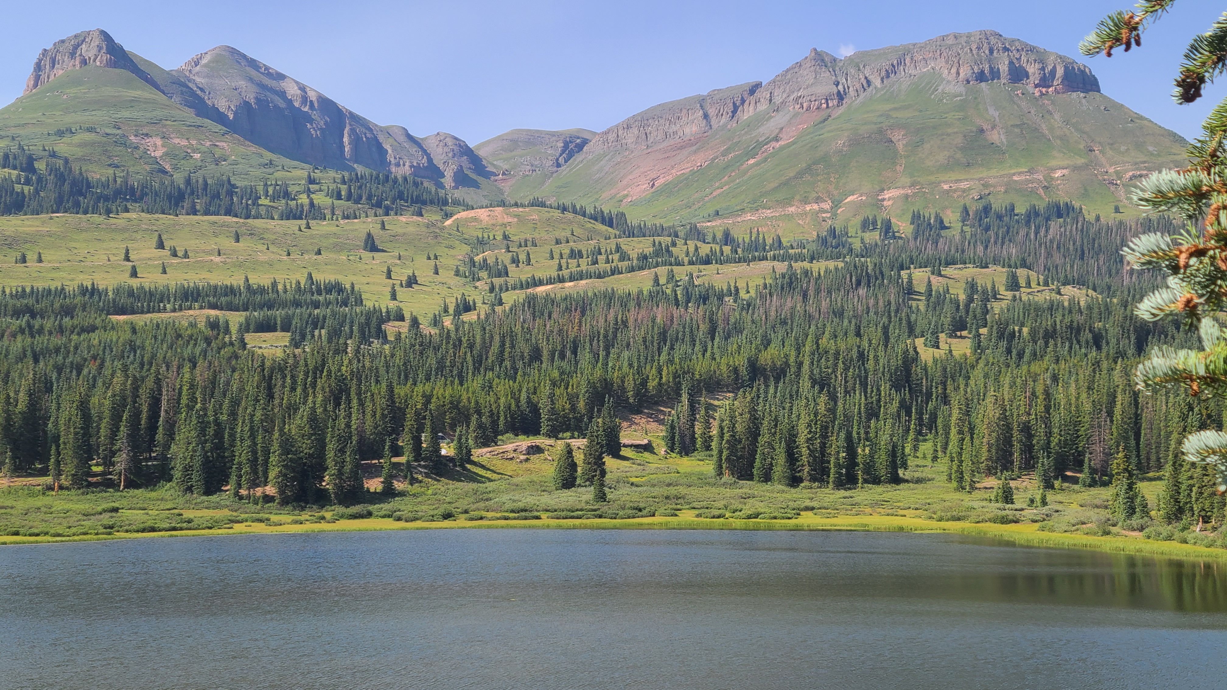 The climb up towards Molas Pass gains about 2000 feet in elevation. After the challenges of descending along Elk Creek the day before, I was surprised how kindly graded the trail was today. I had a nice chat with another CT hiker called Danimal on the way up; we joked that our trail names Lone Wolf & Danimal could comprise the title of a bad “B” movie knock off of Alien vs Predator. After about 10 miles for the morning I reached Molas Lake and unintentionally took the long way around to the campground store to pick up my resupply box. The cashier inside was very friendly as she retrieved my box; I heard they had been inundated with hiker boxes this summer. I purchased a couple sodas, an ice cream bar, and a microwave burrito, and she invited me use to use their power strip on the picnic table outside.