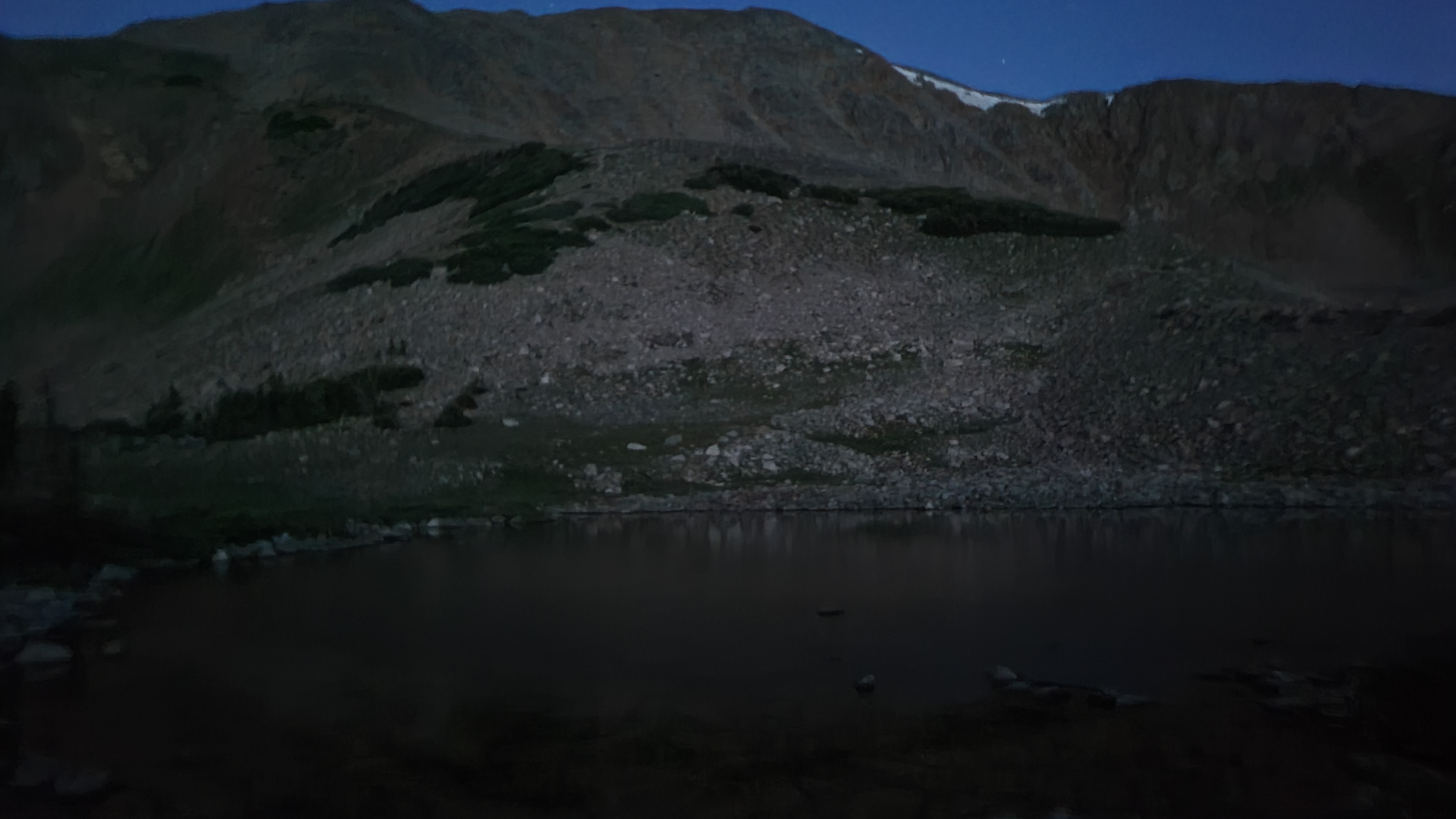 I was starting at around 11,700 feet and had to climb to the Colorado Trail high point of 13,271 feet over the first 7 miles. Once I reached tree line I could see the clouds fill in the valleys below. A bit further up there was a great view of Lake San Cristobal; as a child my family would often rent a cabin near there. With the exception of a challenging switchback corner I had to crawl over, the climb was more relentless than it was steep.